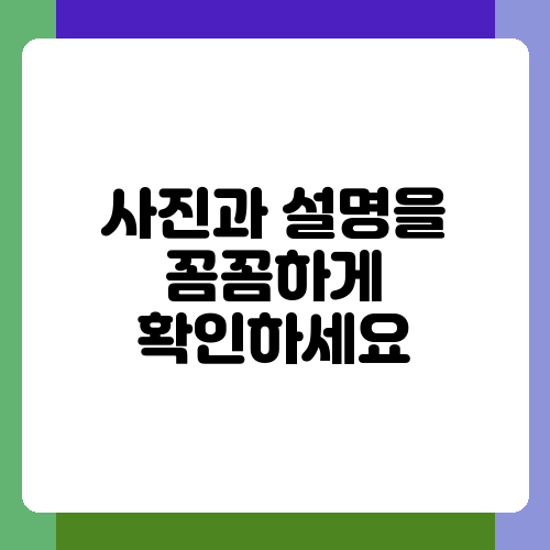 아무리 사진과 설명이 좋아도 직접 방문해서 확인하는 것이 가장 중요합니다. 직접 방문해서 방의 크기, 채광, 소음, 냄새 등을 직접 확인하고, 주변 환경도 살펴보세요. 그리고, 계약 조건을 꼼꼼히 확인하고, 궁금한 점은 부동산에 질문해서 확실하게 이해하고 계약하는 것이 좋습니다. 계약 전에 모든 사항을 명확히 하고, 계약서를 꼼꼼히 확인해서 나중에 발생할 수 있는 문제를 예방하세요. 특히, 계약 기간, 해지 조건, 관리비 등을 자세히 확인해야 합니다. 저는 예전에 계약서를 대충 읽어봤다가 나중에 문제가 생긴 적이 있어요. 여러분은 계약 전에 꼼꼼하게 확인하고, 문제가 발생하지 않도록 주의하세요!