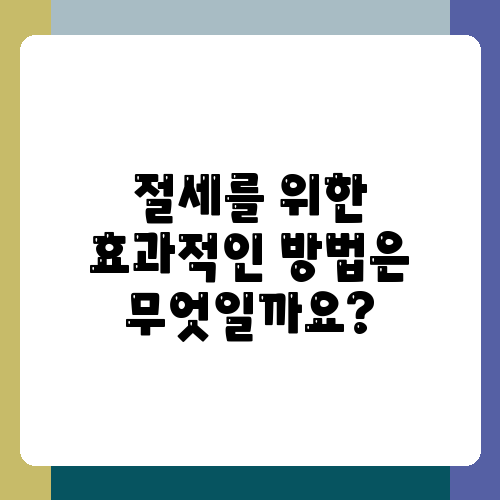 절세를 위한 효과적인 방법은 무엇일까요?