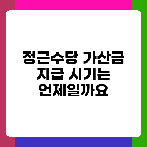 정근수당 가산금의 지급 시기는 일반적으로 정근수당과 함께 지급되는 경우가 많습니다. 하지만, 가산금의 종류나 지급 사유에 따라 지급 시기가 달라질 수 있으므로 주의해야 해요. 일부 가산금은 연말에 정산하여 지급되기도 하고, 특정 업무 완료 시점에 지급될 수도 있답니다. 때문에 소속 기관의 인사 규정이나 관련 지침을 꼼꼼하게 확인하셔야 정확한 지급 시기를 알 수 있습니다. 혹시 궁금한 점이 있다면 담당 부서에 직접 문의해서 확실하게 확인하는 것이 좋습니다. 소중한 권리를 놓치지 않도록 미리미리 확인하는 센스! 잊지 마세요.