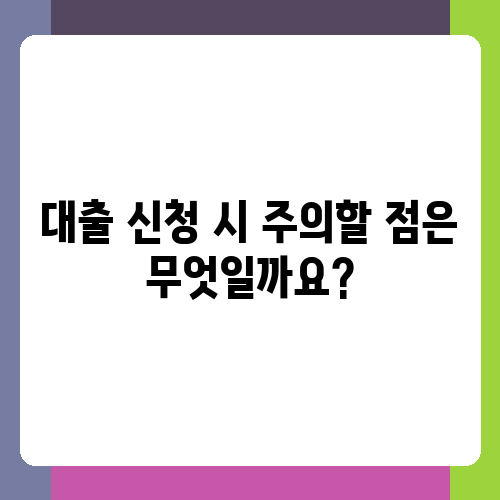 대출 신청 전에 대출 조건과 금리, 상환 방식 등을 꼼꼼히 비교하고 확인하는 것이 중요합니다. 본인의 상황에 맞는 대출 상품을 선택해야 불필요한 금융 부담을 줄일 수 있어요. 또한, 중도상환 수수료 등 관련 수수료에 대한 정보도 확인하고, 무리한 대출은 피하도록 해야 합니다. 상환 계획을 미리 세우고, 계획대로 상환할 수 있는지 충분히 고려하여 신청하시는 것이 좋습니다. 그리고 대출 신청 시 허위 정보를 기재하지 않도록 주의해야 합니다. 허위 정보 기재는 심각한 불이익을 초래할 수 있으니 정확한 정보를 제공해야 합니다.